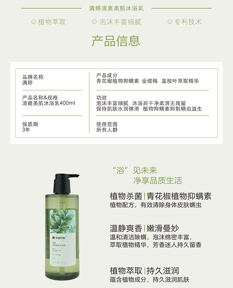 商品名称:满婷(MANTING)清爽美肌沐浴乳400ml (定制款)