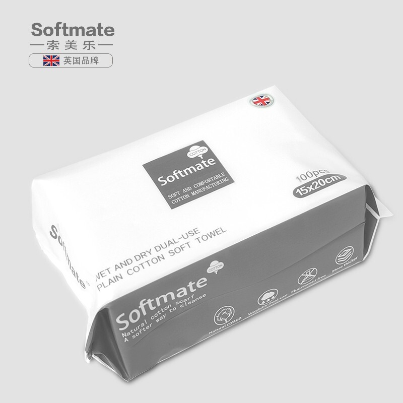 英国索美乐softmate 亲肤纯棉柔巾15*20cm(平纹)100抽 100抽*1包