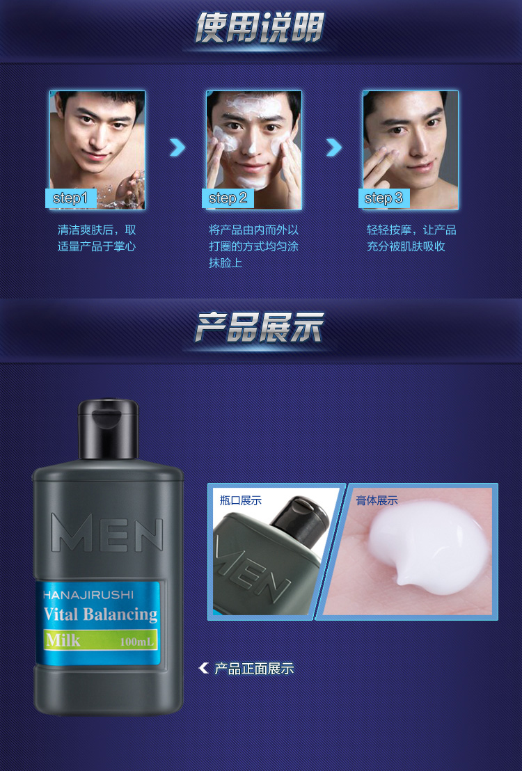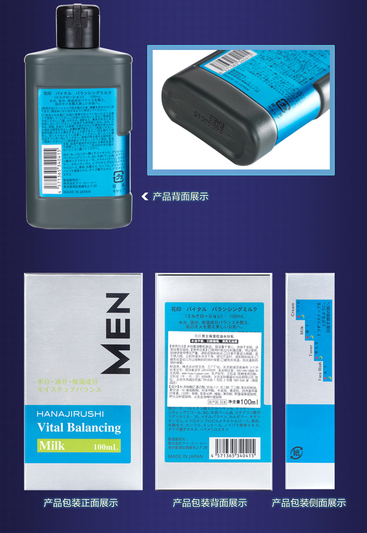 商品名称:花印男士保湿控油水份乳100ml补水保湿滋养 乳液面霜 护肤品 日本进口