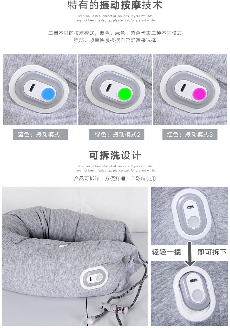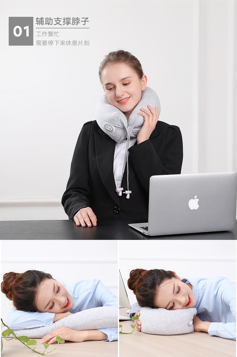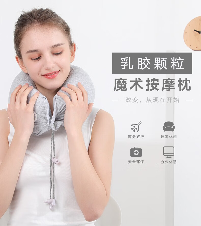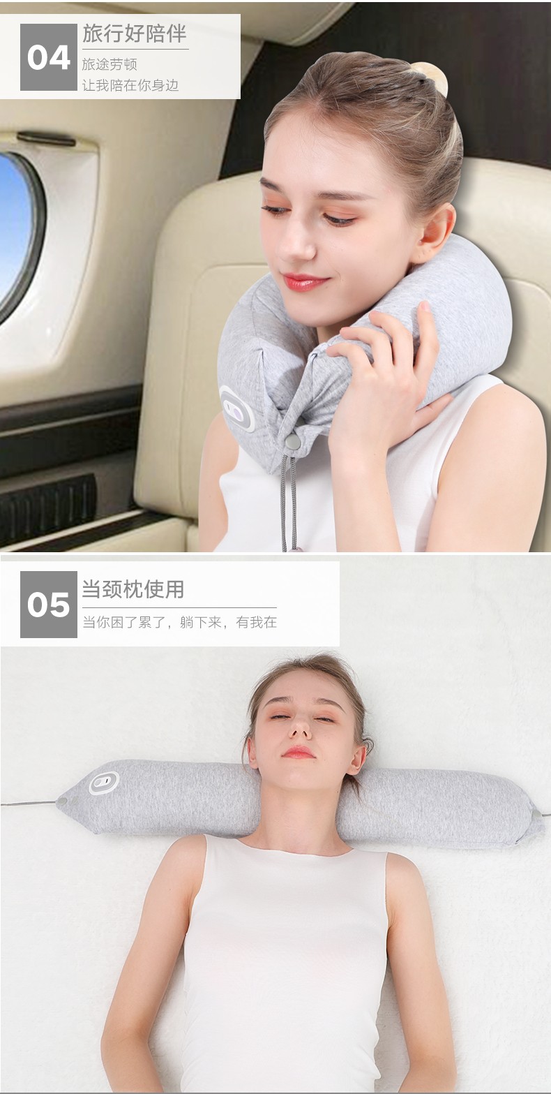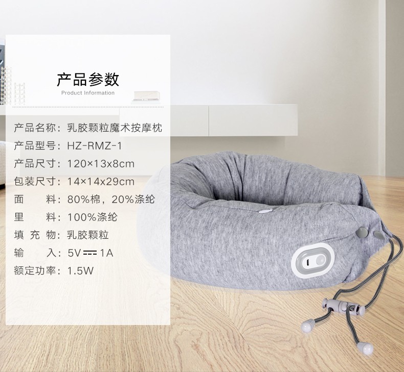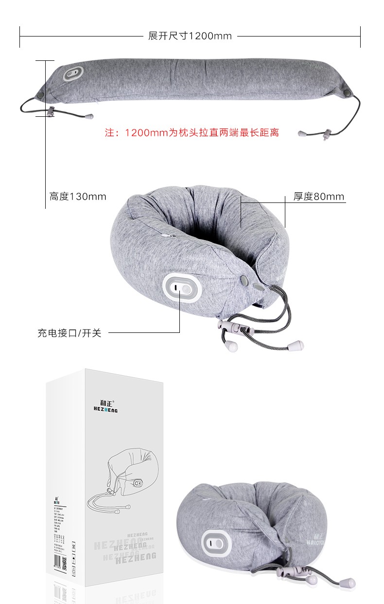 商品名称:和正多功能U型枕 乳胶颗粒振动按摩枕 午睡商务旅行护颈枕 可拆洗护腰 无线操作便携HZ-RMZ-1