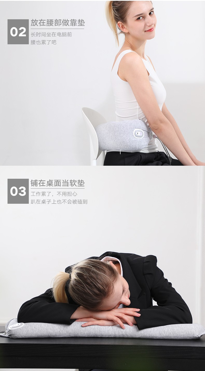 和正多功能U型枕 乳胶颗粒振动按摩枕 午睡商务旅行护颈枕 可拆洗护腰 无线操作便携HZ-RMZ-1