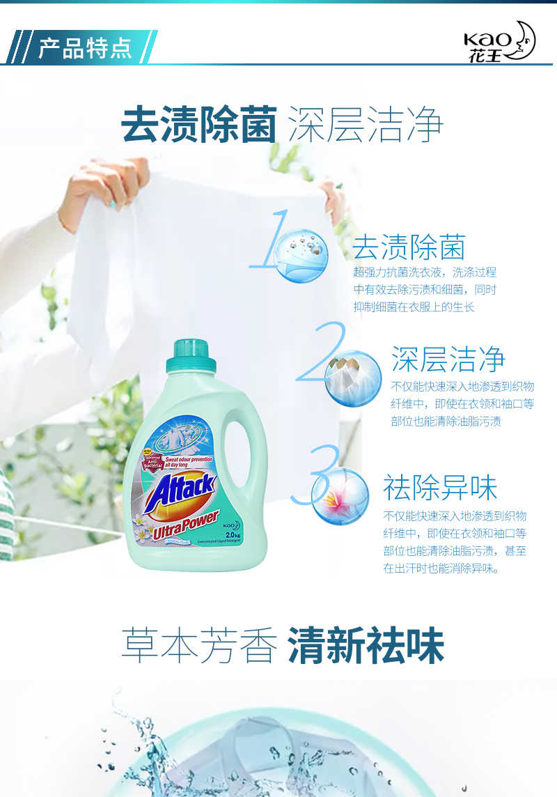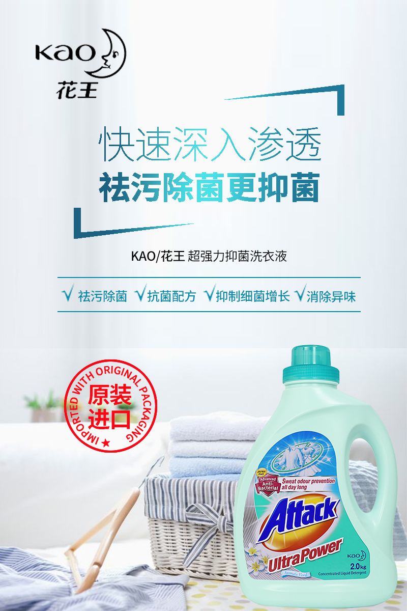 商品名称:进口花王超强力抗菌洗衣液 防螨除菌 低泡 不含荧光剂 去污渍洁净