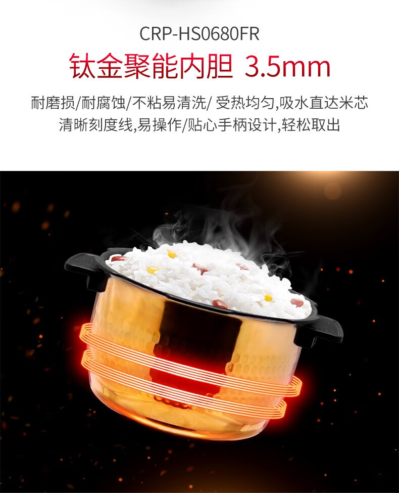 商品名称:福库(CUCKOO) ih电饭煲 3升原装进口电饭煲 电磁加热 CRP-HS0680FR 黑红色 3L