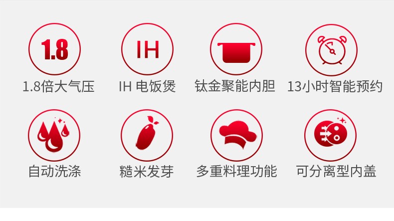 • 功能:粥/汤,快速饭,杂粮饭,煲仔饭,稀饭,蒸,热饭,蛋糕