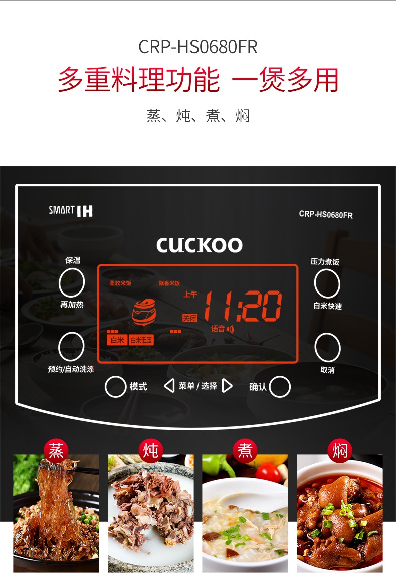 首页 > 自营商品 > 家用电器 > 厨房小电 > 电饭煲 > 福库(CUCKOO) ih电饭煲 3升原装进口电饭煲 电磁加热 CRP-HS0680FR 黑红色 3L