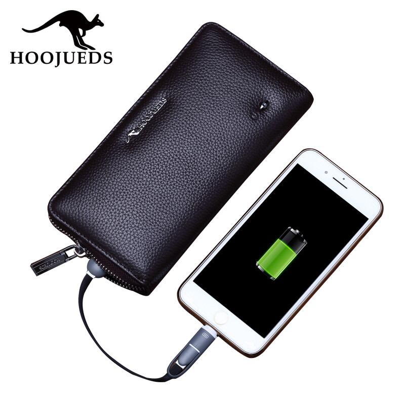商品名称:澳大利亚袋鼠 智能报警防丢手包真皮充电钱包男 定位长款拉链手拿包 DS90008-2黑色