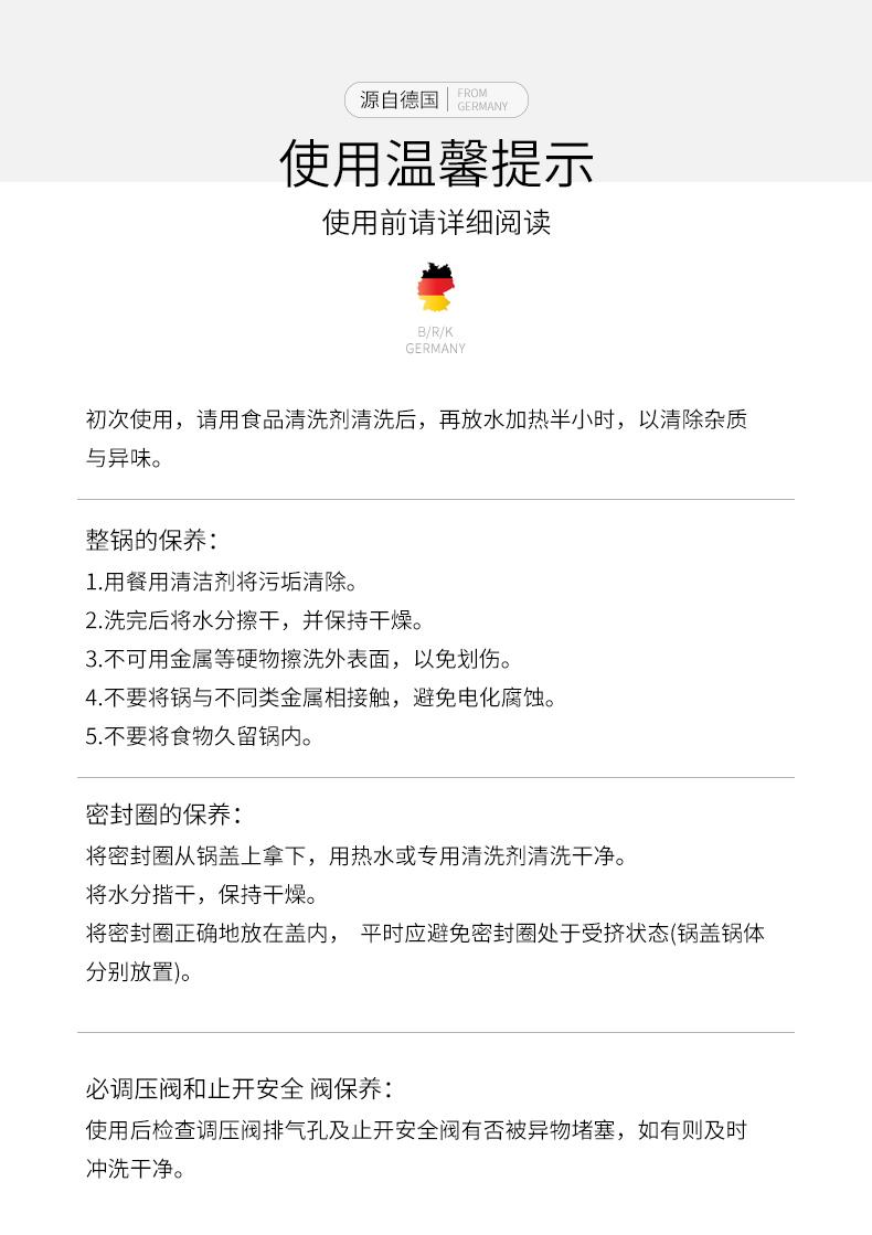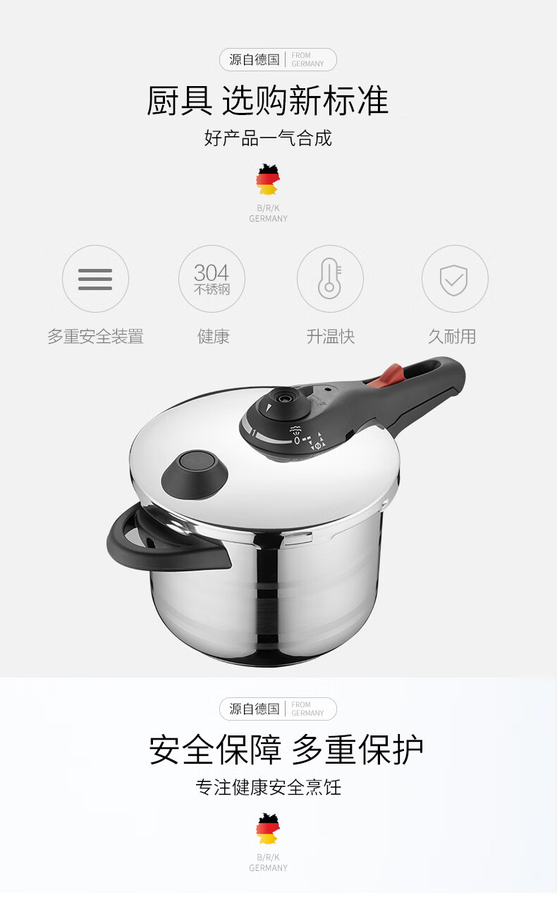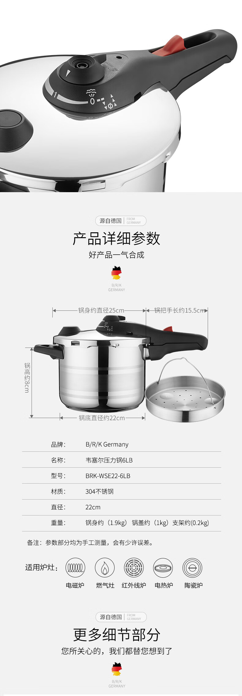 商品名称:德国BRK 韦塞尔压力锅6LB BRK-WSE22-6LB 6L