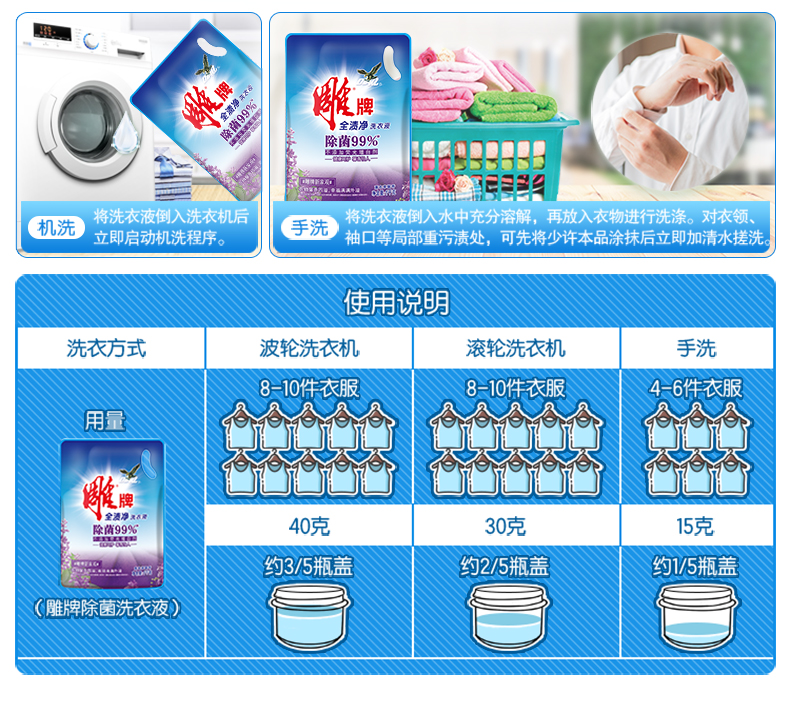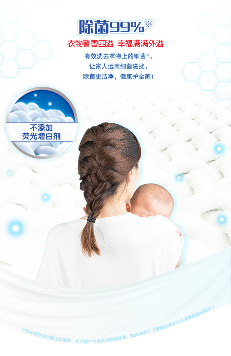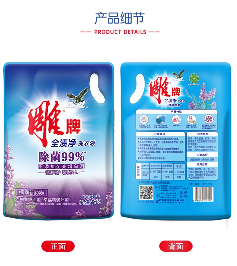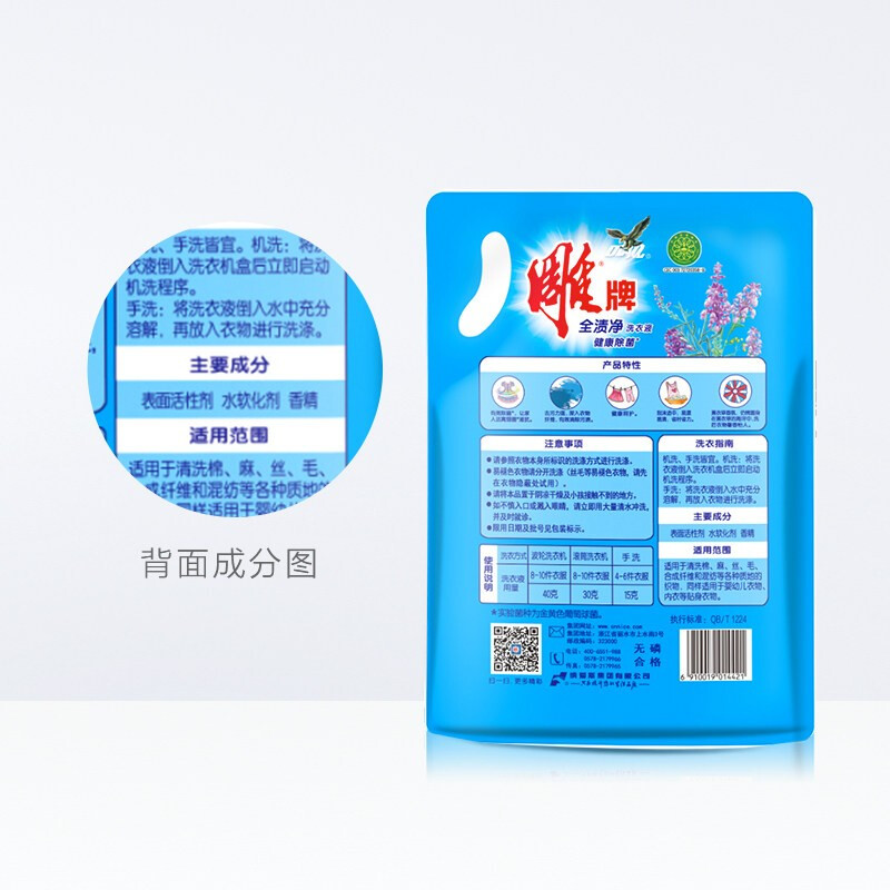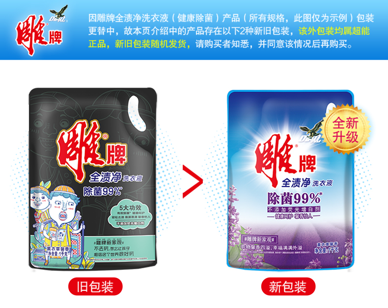 商品名称:雕牌全渍净洗衣液 健康除菌99%薰衣草香1kg*1 2袋起包邮