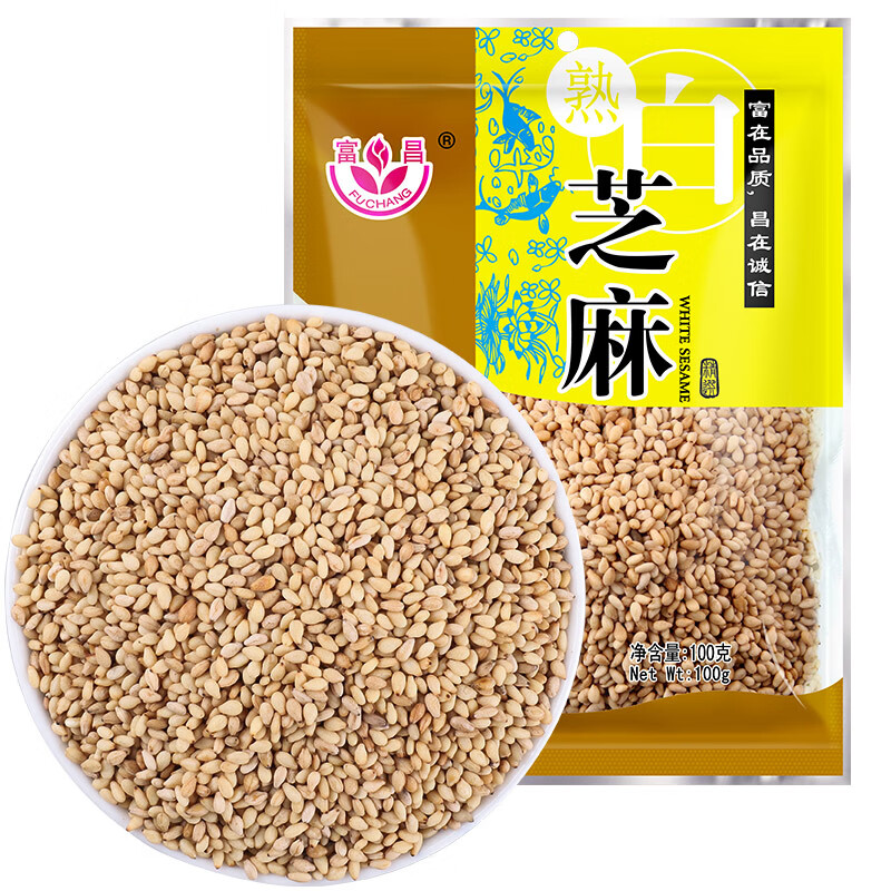 商品名称:富昌 炒熟白芝麻粒100g 烘焙原料 五谷杂粮 即食代餐无杂质 香醇饱满 免洗