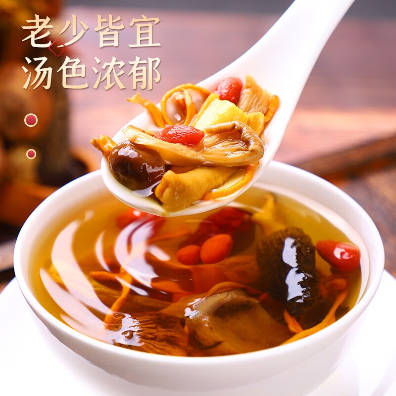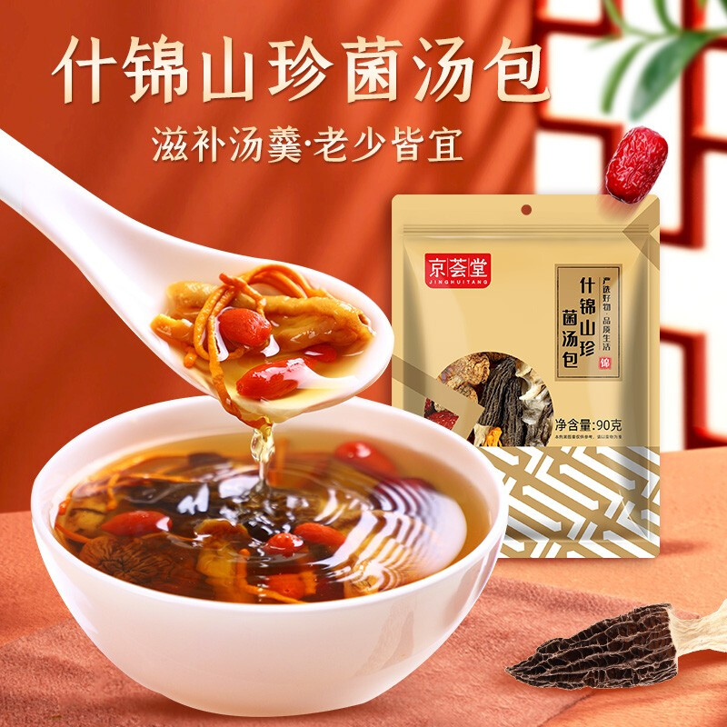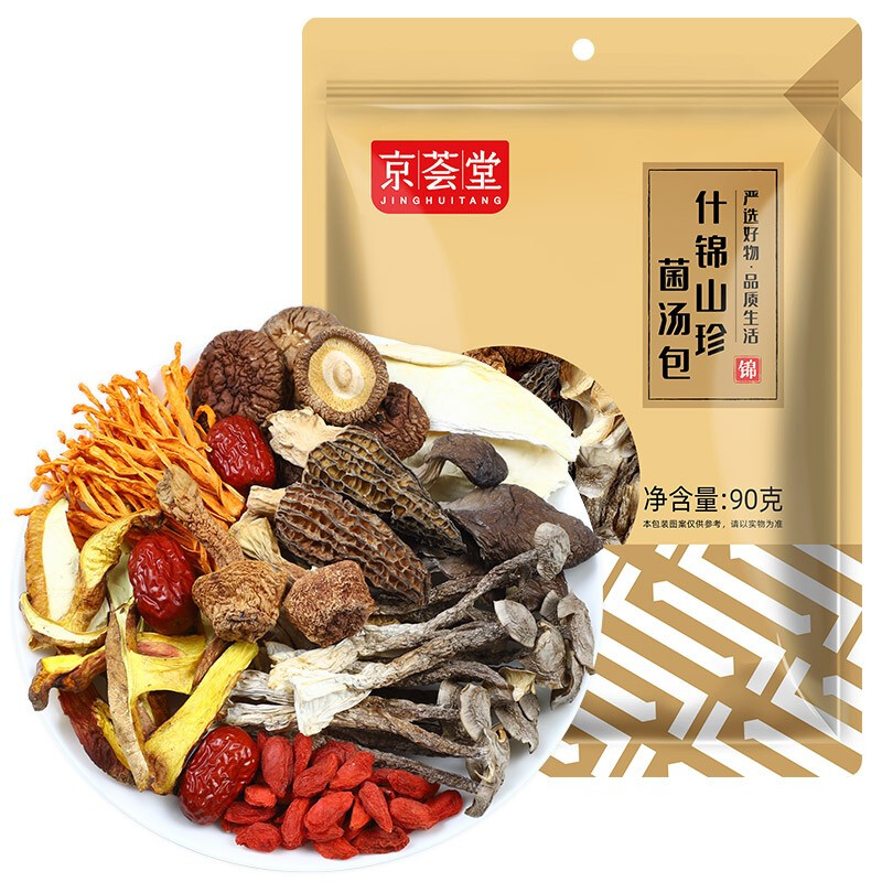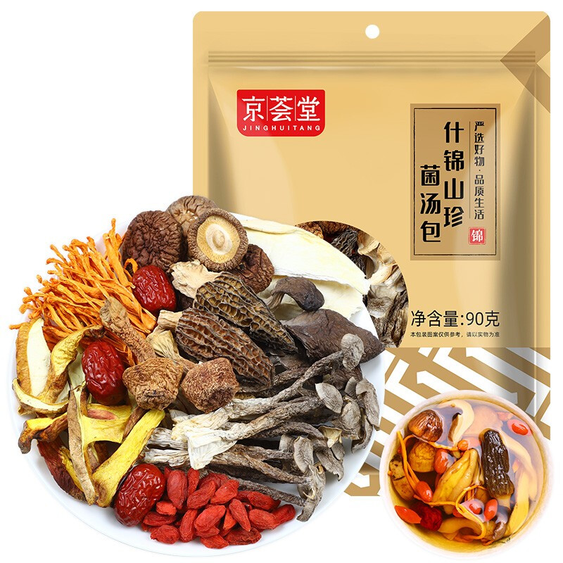 商品名称:京荟堂 十珍菌汤包90g 枸杞姬松茸羊肚菌鹿茸菇蛹虫草牛肝菌十珍菌类煲汤滋补食材云南特产干货料调料包