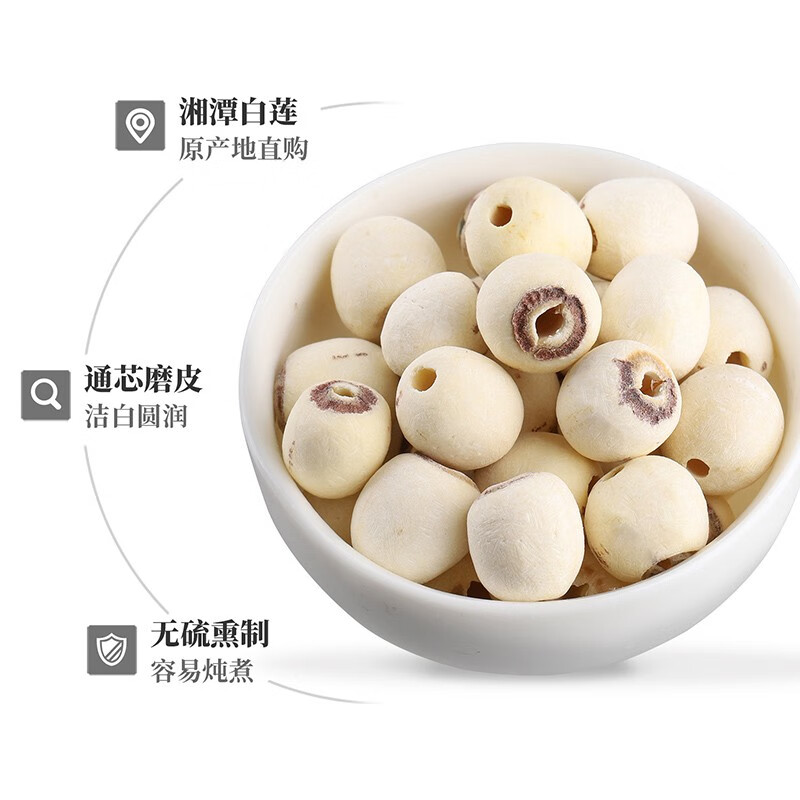 商品名称:京荟堂 莲子520g 精选湘莲去芯磨皮 干货 银耳桂圆百合枸杞冰糖羹通心无芯