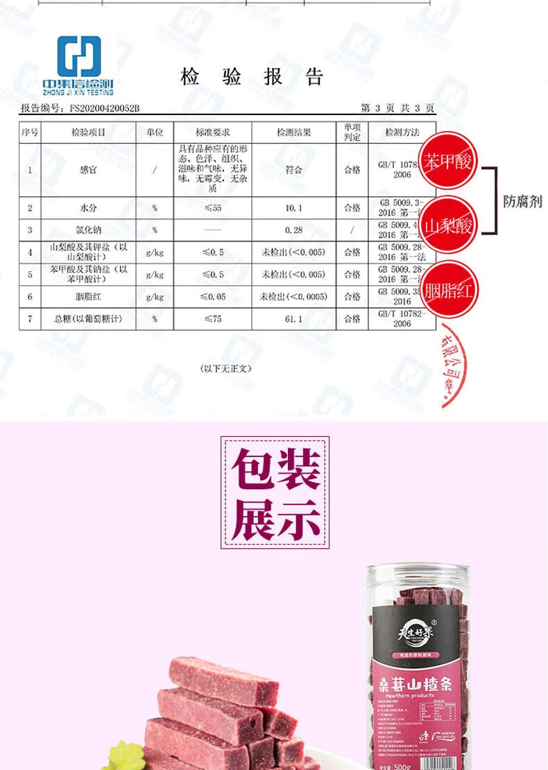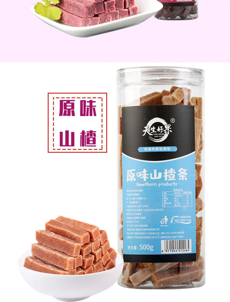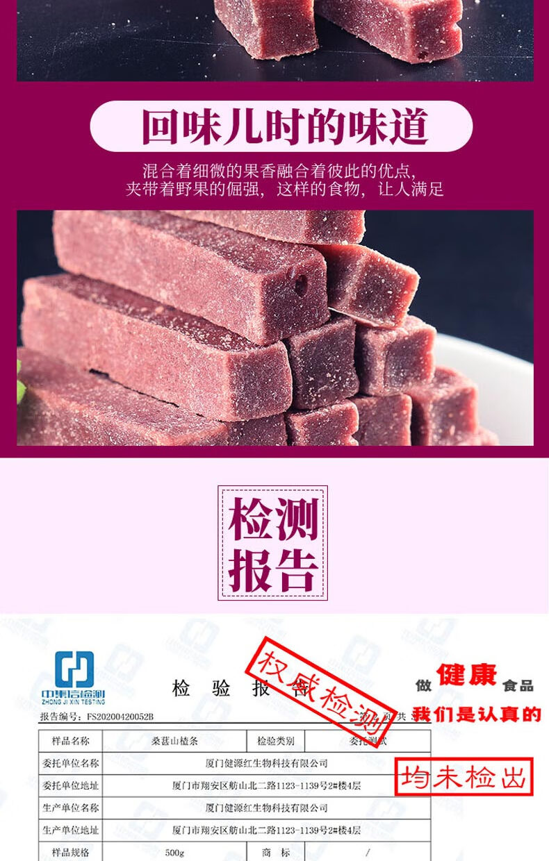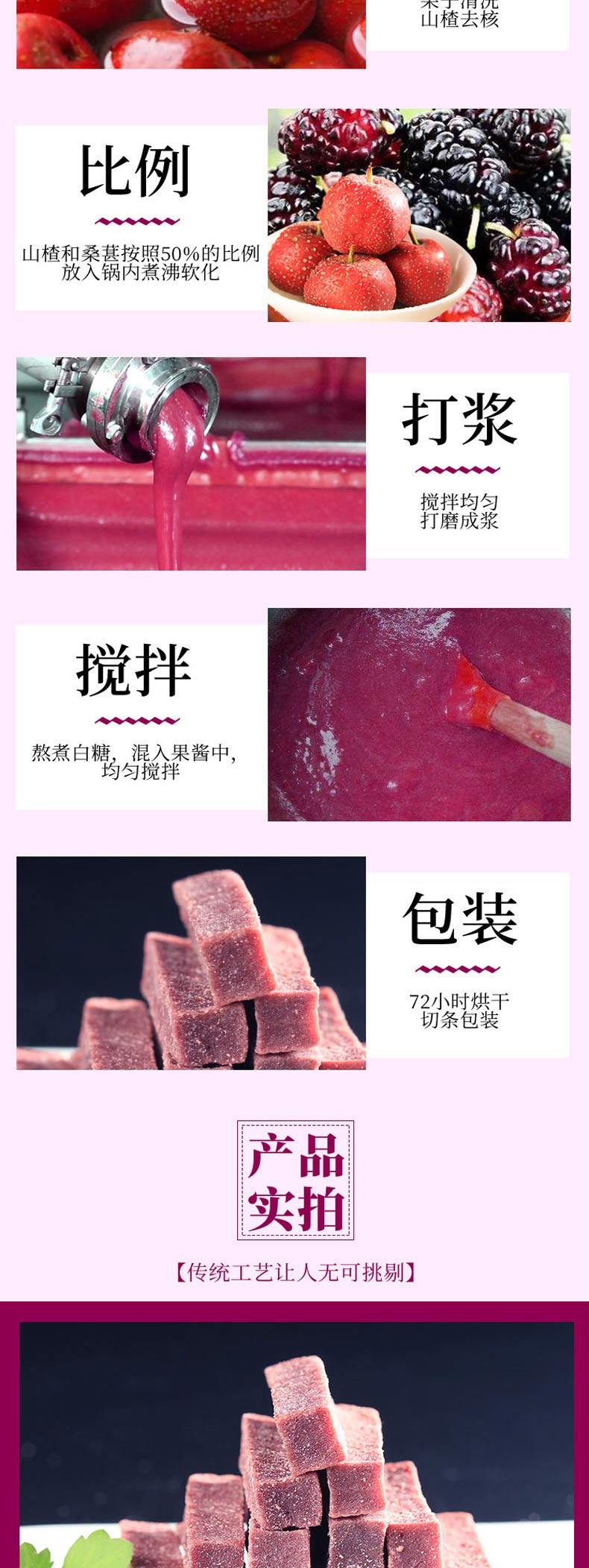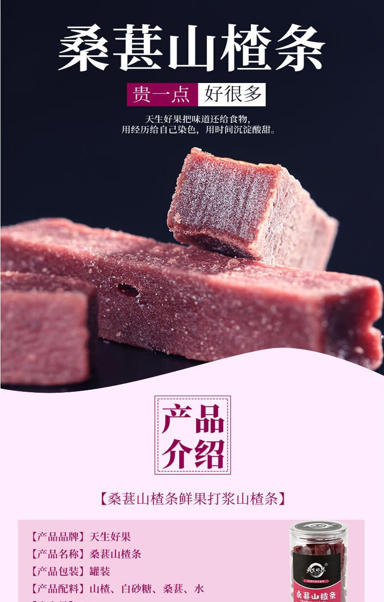 商品名称:天生好果 儿童零食桑葚山楂条1000g山楂干蜜饯果干休闲开胃零食小吃 桑葚山楂500g