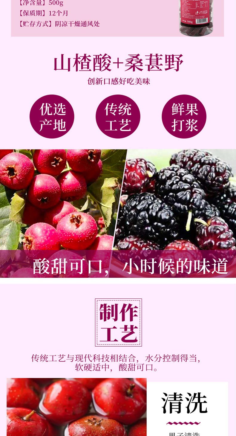 天生好果 儿童零食桑葚山楂条1000g山楂干蜜饯果干休闲开胃零食小吃 桑葚山楂500g