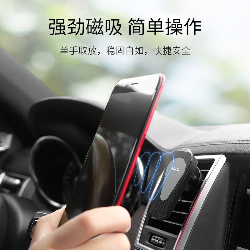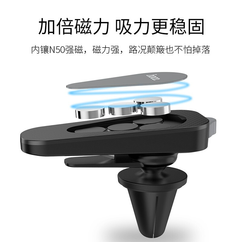 浩酷(HOCO) CA37 出风口多功能磁吸车载手机支架 强磁吸力带隐藏式安全锤 黑灰色