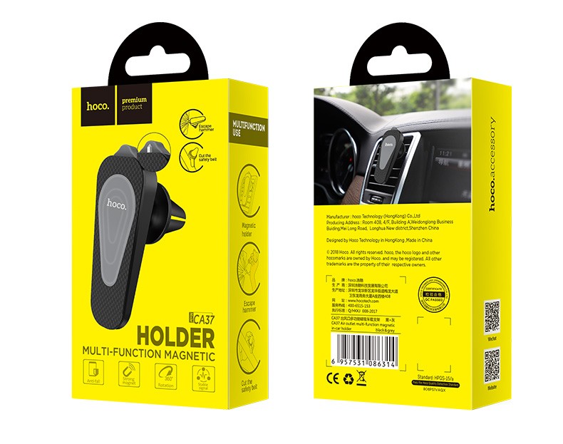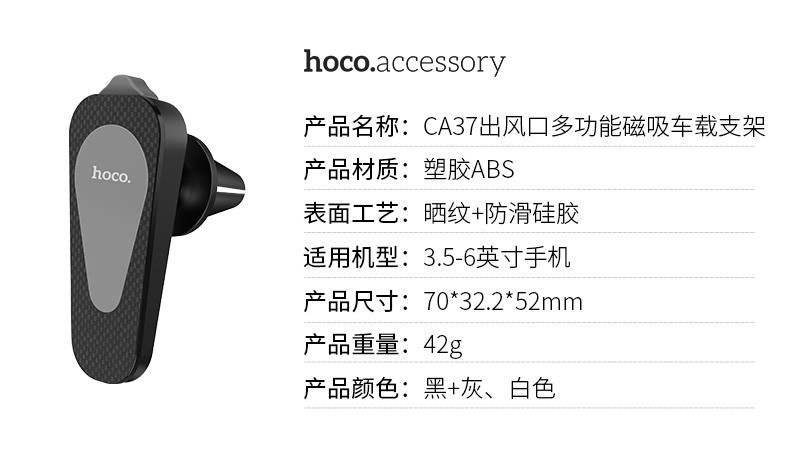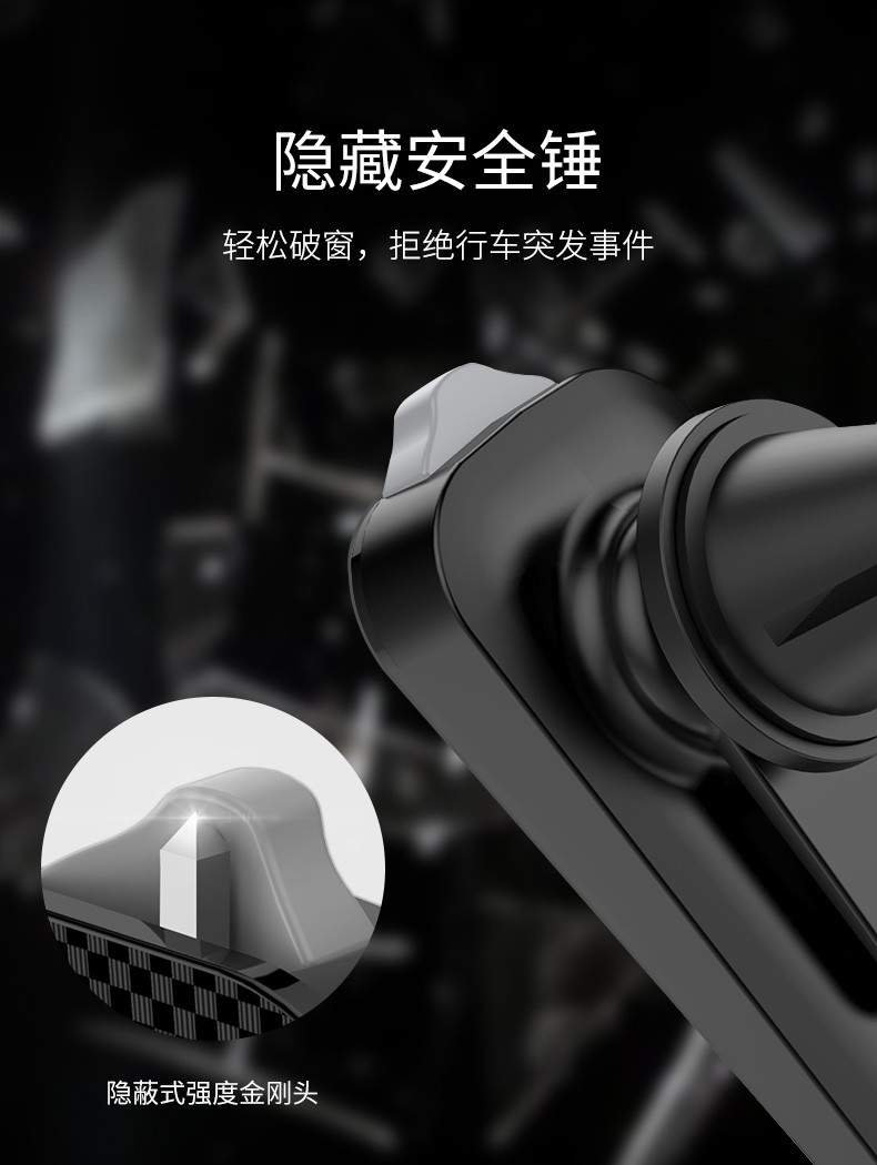 商品名称:浩酷(HOCO) CA37 出风口多功能磁吸车载手机支架 强磁吸力带隐藏式安全锤 黑灰色