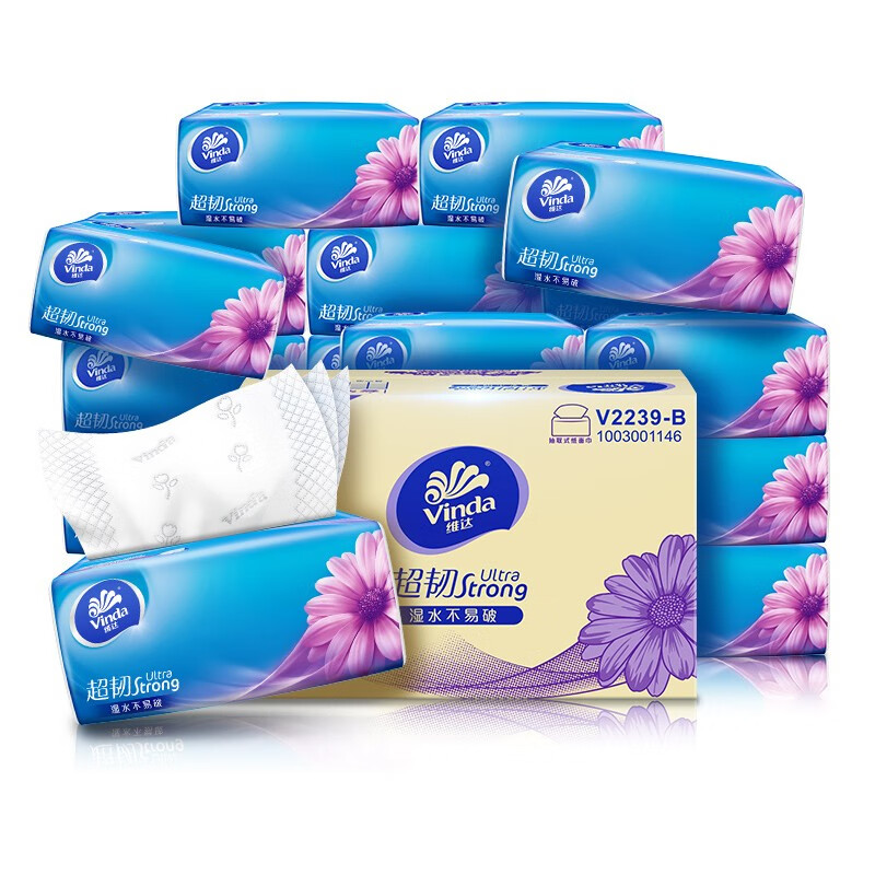 维达(Vinda) 超韧抽纸3层110抽24包 软抽餐巾纸纸抽面巾纸 卫生纸巾抽擦手纸(整箱) 24包整箱