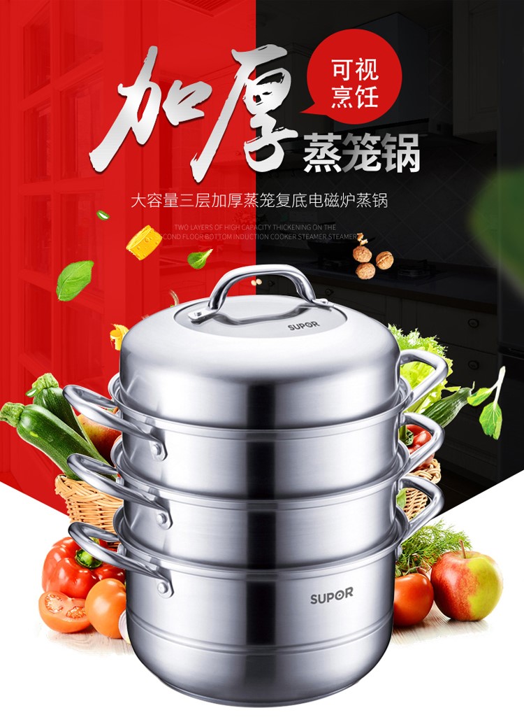 商品名称:苏泊尔易存储304不锈钢三层复底蒸锅燃气煤气电磁炉通用锅具蒸笼SZ26B4