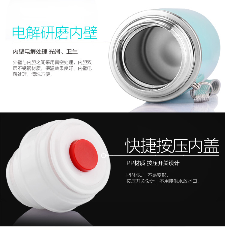商品名称:邦达保温杯男女 儿童双层不锈钢子弹头户外旅行带提绳水杯子粉色 500ml