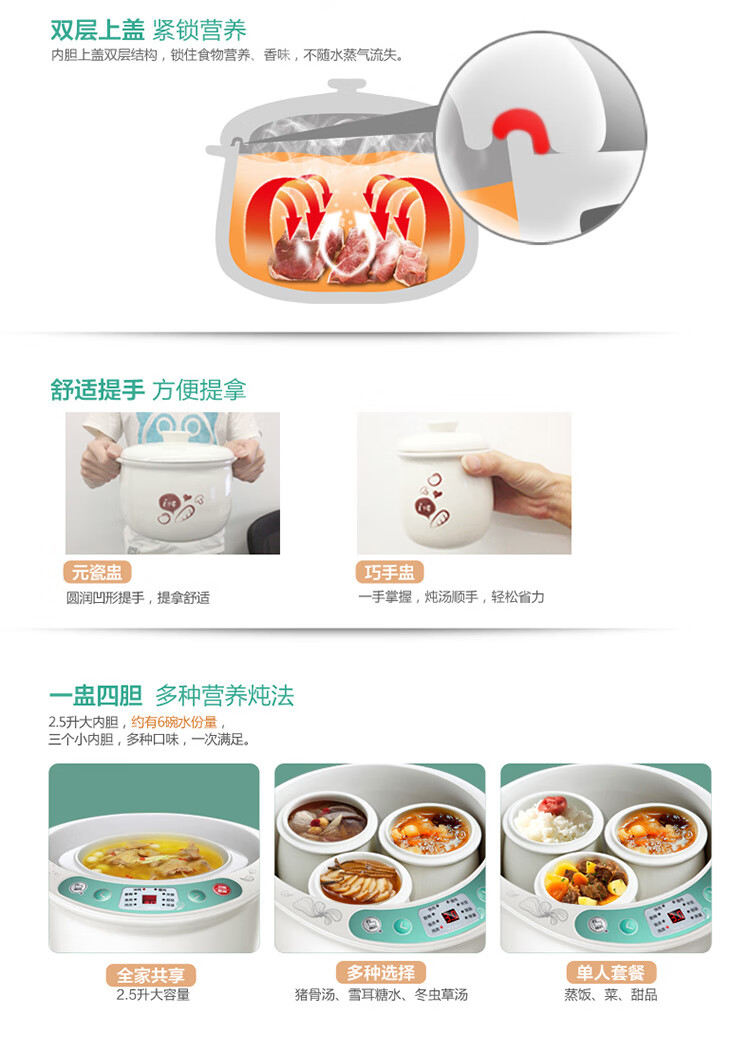 商品名称:小熊(Bear)智能隔水炖家用预约保温电炖锅 DDZ-125TB