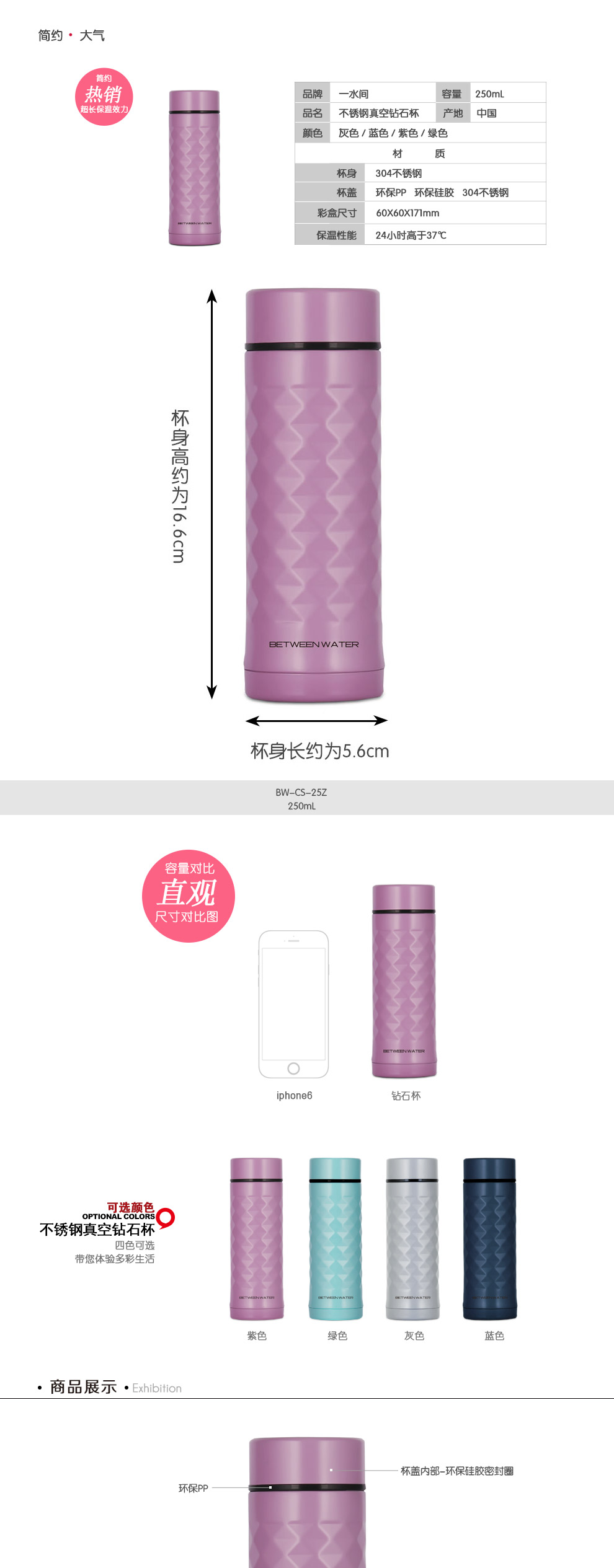 商品名称:一水间 BETWEEN WATER 不锈钢真空钻石杯 BW-CS-25Z 250ML