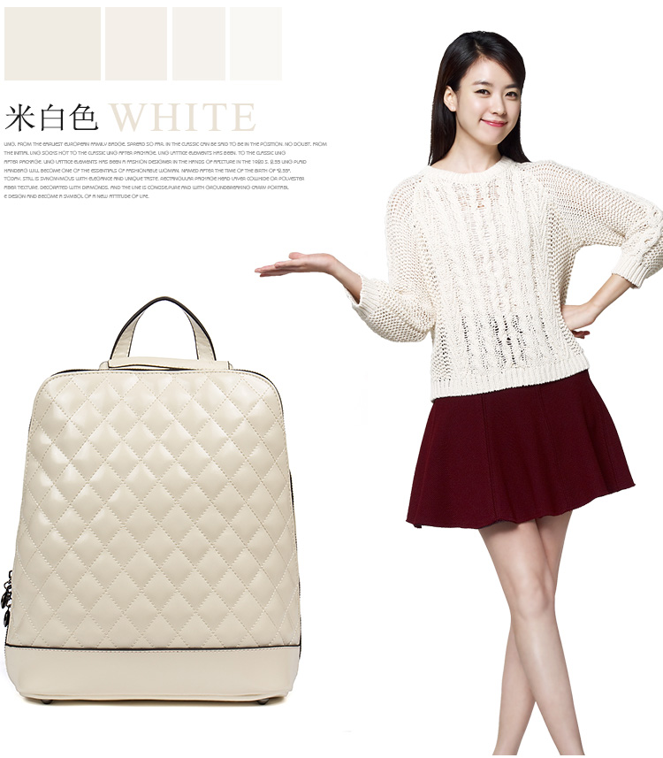 商品名称: 海谜璃(HMILY)新款牛皮女包 时尚菱格女士双肩包背包 甜美淑女手提包单肩包 H6910