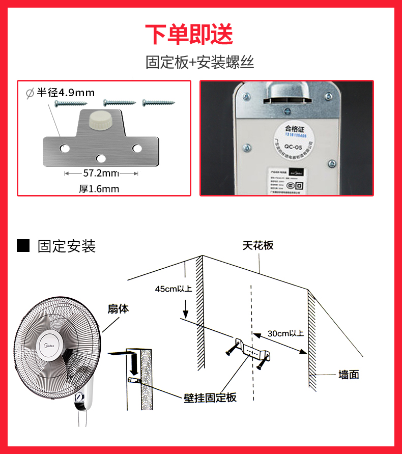商品名称:美的(Midea)壁扇(FWA40YA)