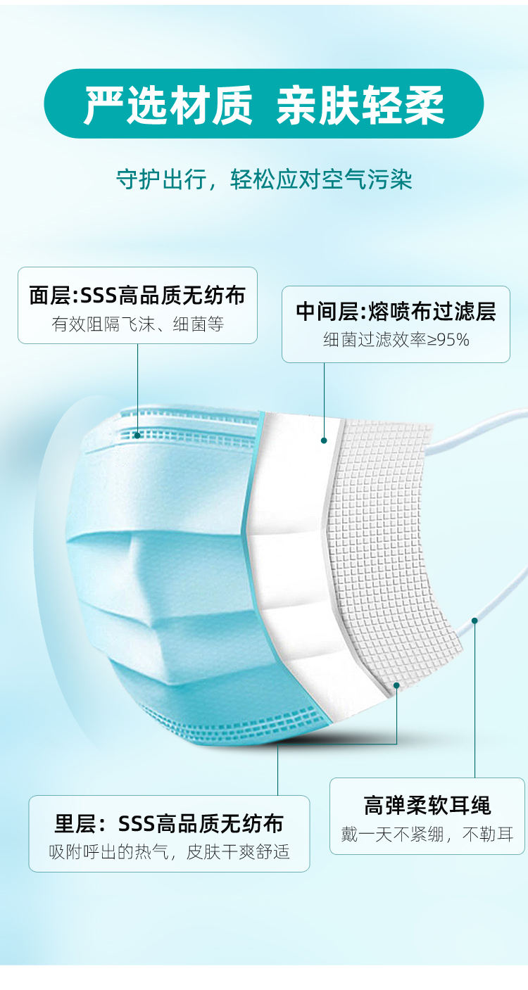商品名称:万信达一次性医用口罩成人款1500只蓝色(整箱)30盒/箱