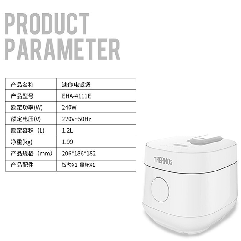 膳魔师(THERM0S) 膳魔师电饭煲情侣大容量电饭锅煮饭煲汤不锈钢内胆 EHA-4111E 简约白 1.2L