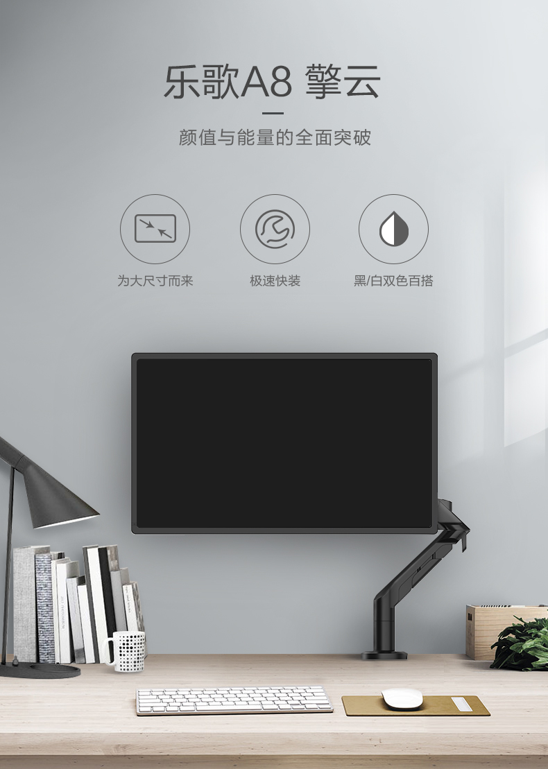 商品名称:乐歌(Loctek) A8擎云液晶电脑显示器支架 旋转电脑架 可升降桌面支架桌面免打孔电脑支架 擎云-雅黑A8