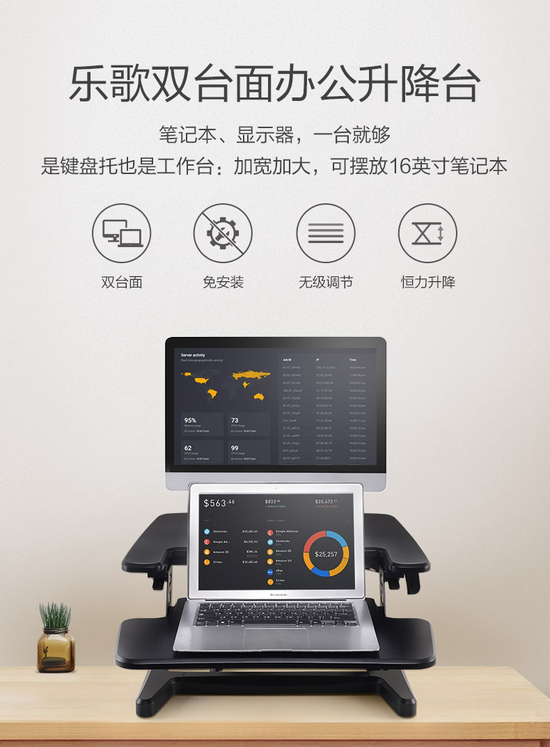 商品名称:乐歌升降桌子站立式电脑桌 台式坐站交替站立办公桌书桌折叠桌升降台笔记本显示器支架M7S黑色