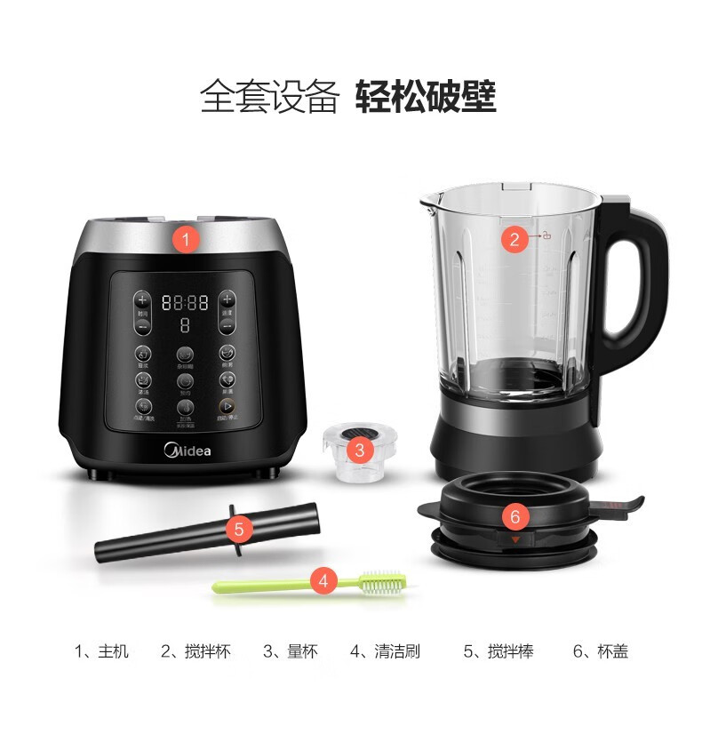 商品名称:美的破壁机家用小型多功能加热豆浆辅食料理破碎机MJ-BL1036A