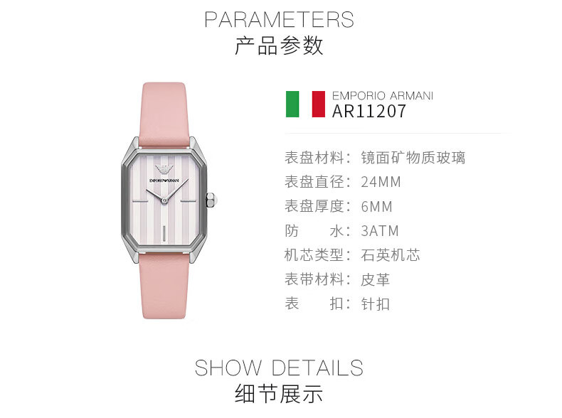 商品名称:Armani阿玛尼手表女小绿表皮带石英女士表新款小方盘方块表时尚休闲商务超薄腕表 AR11147