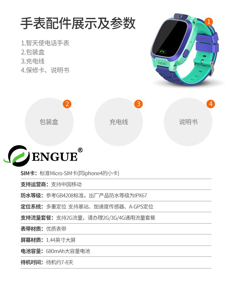 恩谷 EG-T18 深度防水超长待机儿童智能手表 engue恩谷彩色触屏 单个 颜色随机 支持移动联通电信高清通话 拍照 智能SOS定位学习手表 680mlAh大容量电磁 每个重量45g