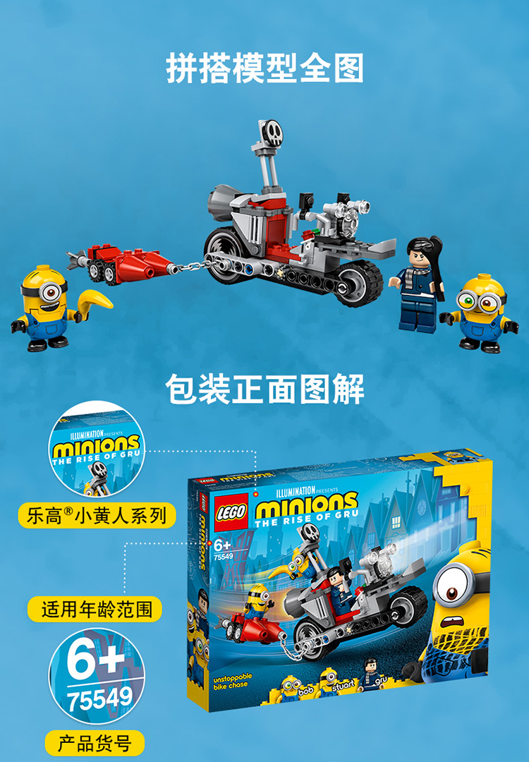 商品名称:乐高LEGO 小黄人电影 卑鄙的我 益智拼插积木 75549 无法阻挡的摩托车追击