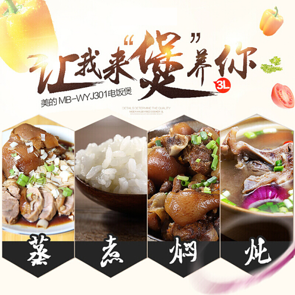 商品名称:美的(Midea)电饭煲 精铸发热盘 简单易控 黑晶内胆家用小电饭锅 3升黑晶内胆MB-WYJ301