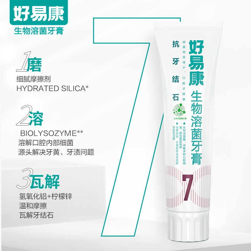 商品名称:好易康(HAOYIKANG)生物溶菌牙膏 清除牙垢去牙结石口腔护理7号120g/盒