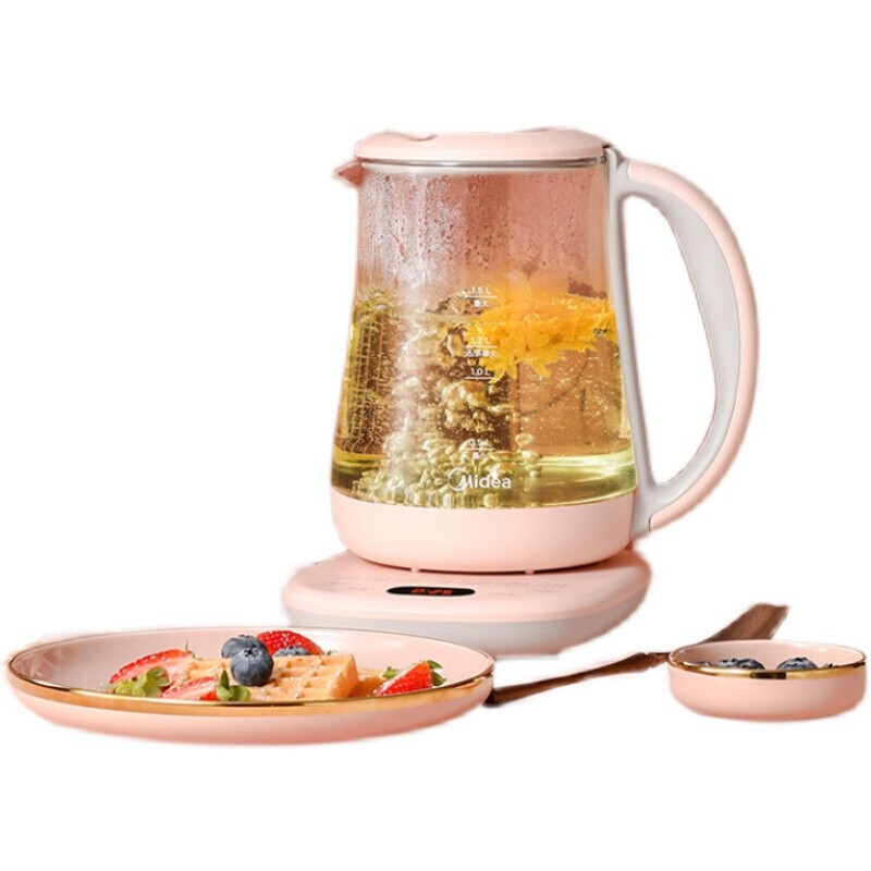 美的(Midea)养生壶电水壶热水壶全自动多功能煮茶器1.5L玻璃 YS15C205A 时尚粉 带蛋架