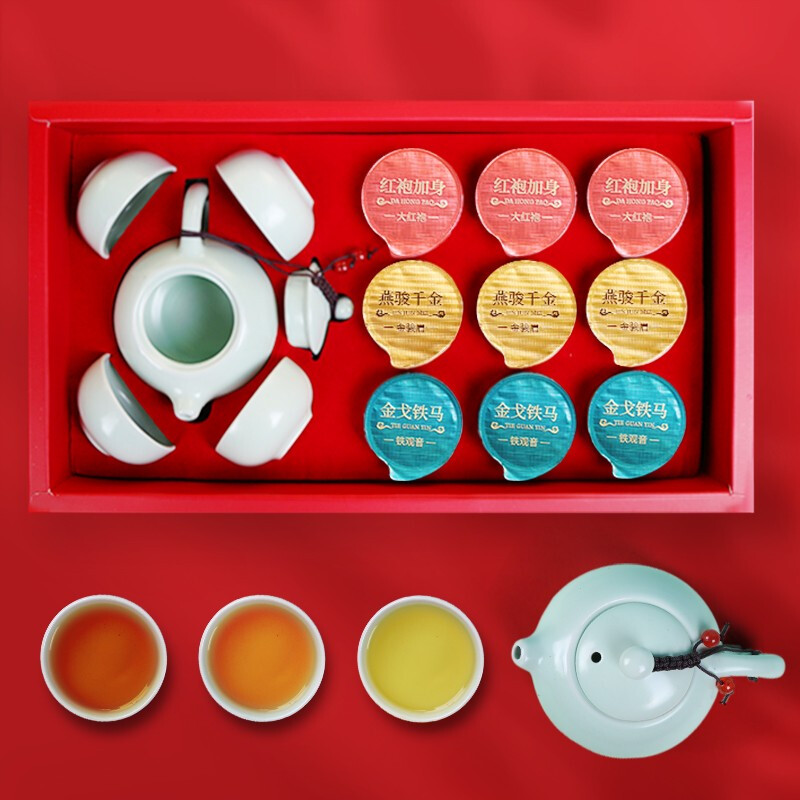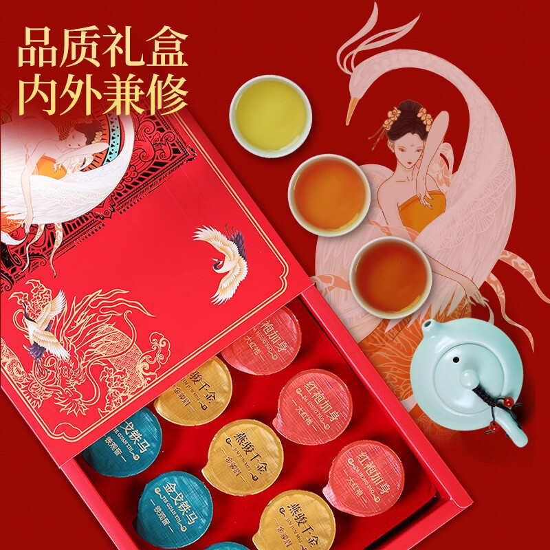 润虎 满堂鸿运国潮礼盒51g金骏眉武夷红茶安溪铁观音大红袍乌龙茶三茶组合装