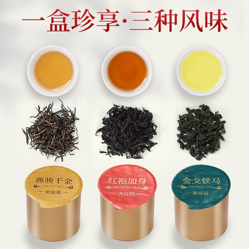商品名称:润虎 满堂鸿运国潮礼盒51g金骏眉武夷红茶安溪铁观音大红袍乌龙茶三茶组合装