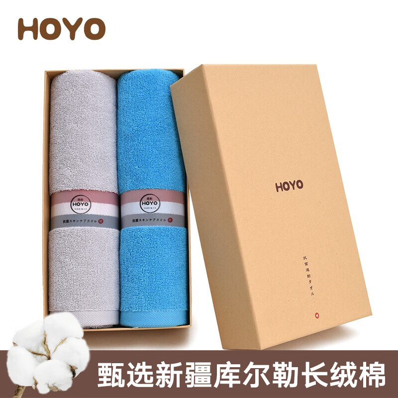 商品名称:日本HOYO纯棉防螨防臭抗菌毛巾礼盒2条装 成人家用洗脸巾运动毛巾 礼品定制企业团购礼盒装 运动礼盒 健康蓝+运动灰