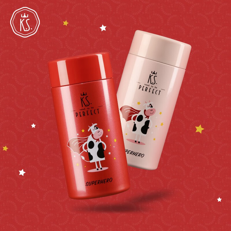 K.S.超级英雄牛牛304不锈钢保温杯保温壶车载水杯男女学生杯子 KS-678 樱粉