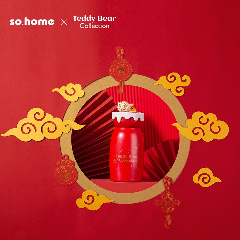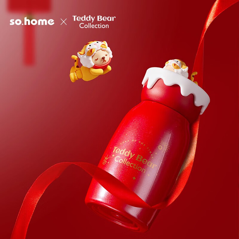 sohome泰迪珍藏招财虎虎年迷你不锈钢保温杯新年款 CT485-26 红色