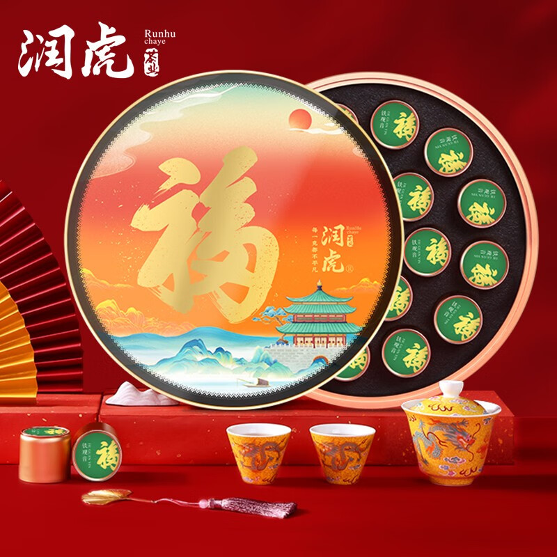 润虎 清香型铁观音茶叶礼盒装126g(7g*18罐)乌龙茶圆形小罐高档大气客户送礼长辈朋友伴手礼