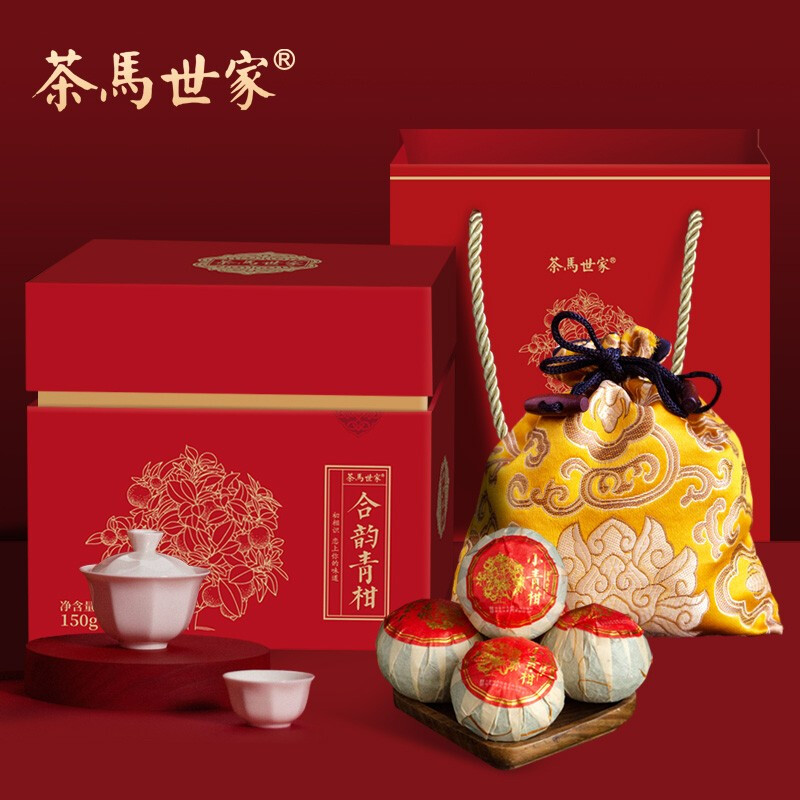 商品名称:茶马世家 合韵 新会生晒小青柑 陈皮普洱茶熟茶 柑普茶 礼盒装150g 云南宫廷普洱茶叶 150g