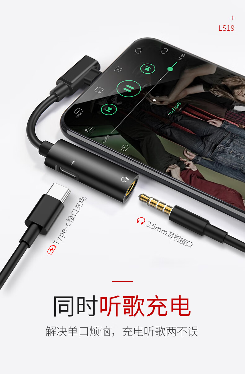 商品名称:hoco.浩酷Type-C耳机转接头3.5音频数据线听歌充电二合一转换器转接线华为小米荣耀手机通用 浩酷LS19 Type-C 二合一音频转换器 黑色