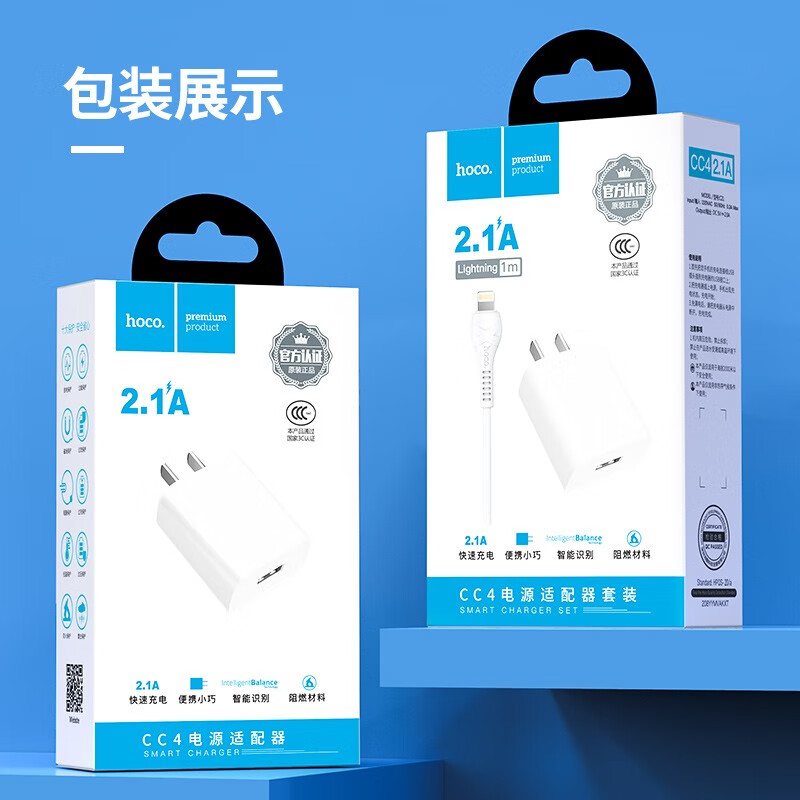 商品名称:浩酷(HOCO)CC4 快速充电器 苹果安卓华为充电套装手机充电头 白色 充电头配micro线套装