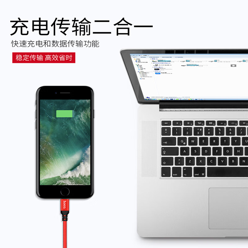 浩酷(HOCO)X14倍速 充电数据线 快充线 安卓 type-c苹果手机尼龙编织充电线 X14 Lightning充电数据线2米 红黑