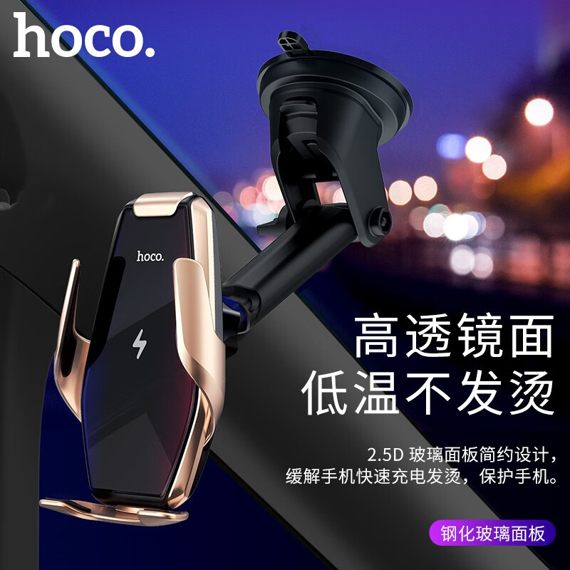 浩酷(HOCO)S14 灵越汽车支架 车载无线充电支架 自动感应开合 车载手机充电支架 金色