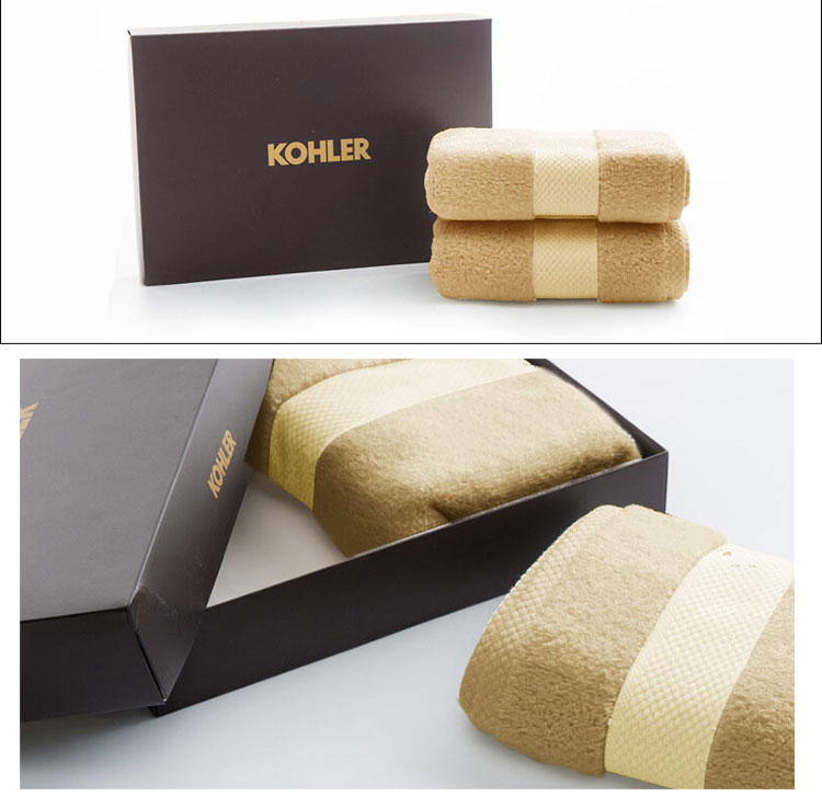 科勒(KOHLER)毛巾家纺 长绒棉毛巾男女洗脸面巾两件套CG-11001-L49浅驼色 礼盒装