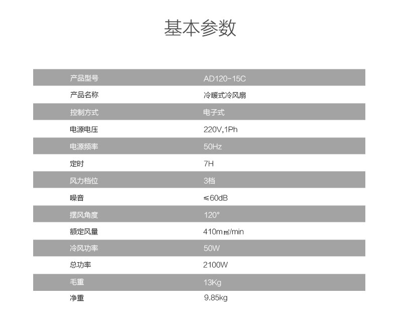 商品名称:美的(Midea)冷暖空调扇小空调冷暖两用智能摇控AD120-15C